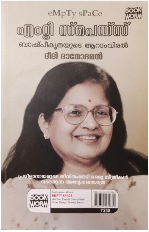 പ്രമീളാനായര് എന്ന വിസ്മരിക്കപ്പെട്ട എഴുത്തുകാരിയുടെ ജീവിതവും കൃതികളും തേടി ദീദി ദാമോദരനും എച്മുക്കുട്ടിയും നടത്തുന്ന യാത്രയാണ് 'എംറ്റി സ്പെയ്സ്: ബാഷ്പീകൃതയുടെ ആറാംവിരല്'. മലയാളത്തില് കഥകളും നോവലും എഴുതുകയും എം ടി വാസുദേവന് നായരുടെ കൃതികള് ആദ്യമായി ഇംഗ്ലിഷിലേക്കു വിവര്ത്തനം ചെയ്യുകയും ചെയ്ത പ്രമീള പിന്നീട് എഴുത്തില് നിന്നും സമൂഹത്തില് നിന്നും അപ്രത്യക്ഷയാവുകയായിരുന്നു. എം ടിയുടെ ആദ്യഭാര്യയും എം ടിയുടെ മൂത്ത മകള് സിതാരയുടെ അമ്മയുമായ പ്രമീള നായര്ക്ക് എന്തു സംഭവിച്ചു എന്ന് ഈ പുസ്തകം അന്വേഷിക്കുന്നു. ഈ പുസ്തകം mt യെ ഇകഴ്ത്തി കാട്ടാനുള്ള പുസ്തമല്ല.. മറിച് ആദ്യ ഭാര്യയായ പ്രമീള ടീച്ചര് ആരായിരുന്നു എന്ന വായനക്ക് മുന്തൂക്കം നല്കുന്നു..